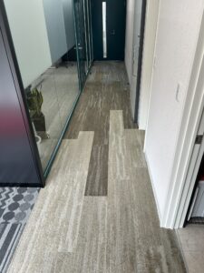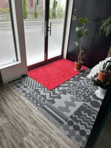 また、タイルカーペット自体の色も貼り分ける事により、奥行き感を演出しております。
