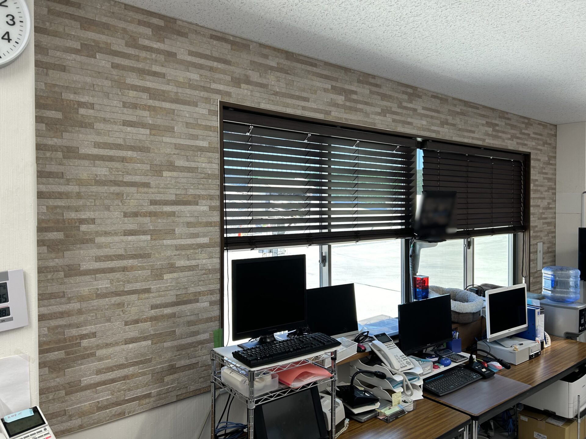 株式会社デーエム様より、事務所内に物置きスペースを設置したいとのことで、アルミパーテーション工事をご依頼いただきました。既存デスク位置を考慮して物置き入口の場所を決めたり、アルミパーテーションの下部を加工して配線を通したりと、使いやすくなるようご提案しながらの工事となりました。